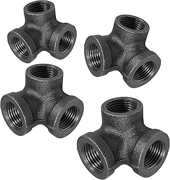 1 2 3 4 1 4 Way Pipe Fitting Malleable Iron Black Side Outlet Tee Female Tube Connector 1pc 1 Inch