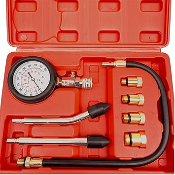 Cylinder compression tester test tool kit professional mechanics gas engine usa new for sale in multiple cities lunnys auto. To determine whether pressure is escaping from the engine you need to check the compression in the cylinders with a compression gauge which measures the amount of pressure that the piston exerts on the fuelair mixture before the spark plug fires the mixture. Azuno cylinder compression tester kit 200 psi digital compression gauge with adapter hose 8 pieces professional compression test tool for gasline engine and small engine. Cylinder compression tester test tool kit professional mechanics gas engine usa new for sale in multiple cities lunnys auto. These gauges dont cost much and theyre easy to use. Attach the compression test adapter into the cylinder nearest the front of the engine then connect the gauge to the other end of the adapter hose.