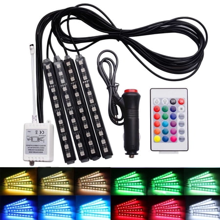 4 Pack 12 Led Car Interior Atmosphere Neon Lights Waterproof Lamp Strip Music Control Ir Remote Controller