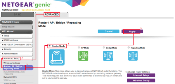 This is a two part step. Set router bs ip. How do i install my netgear or orbi router if i use a gateway from my isp. Your router acts as an central connection point which wireless clients can connect to. Ap mode this is the default most common mode for all wireless routers also called infrastructure mode. Select the advanced tab.