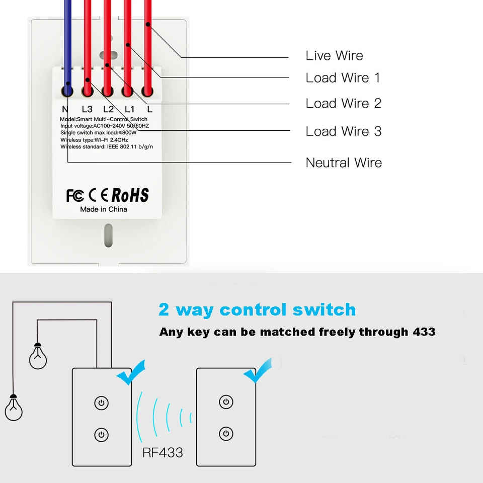 What is the load wire on a light switch. With the switch turned off you should see 120v on the line wire when testing to ground and 0v on the load wire when testing to ground. The traveler wires always connect to the other two screws. At the light it connects to the neutral terminal. The source neutral wire is spliced to the neutral on the receptacle half of the combo device and to the white cable wire running to the light. The common screw connects to the load or hot wire depending where the switch is. Yes there are a few read very very very few switches that dont require a neutral but those will limit you to incandescent only.